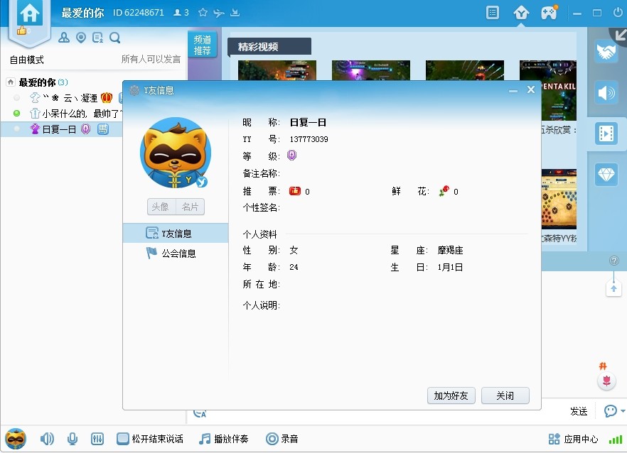 但是我手快还是截图下了他的YY频道和YY信息!!发给大家看看