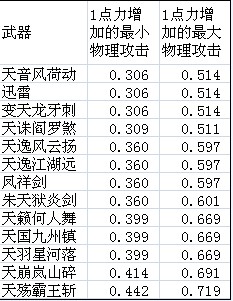 3、力对物理攻击的加成,仅和玩家当前装备的武器有关