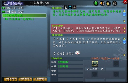 建议:此次任务需要同时接取,因为刑天埋骨双本每天限制只可以去一次,只接除魔防未然任务,那么随机会获得下摆就与你无缘了,如果同时接取,不但可以同时完成,而且还可以有机会获得下摆,重要的是有大量的经验和技能点。