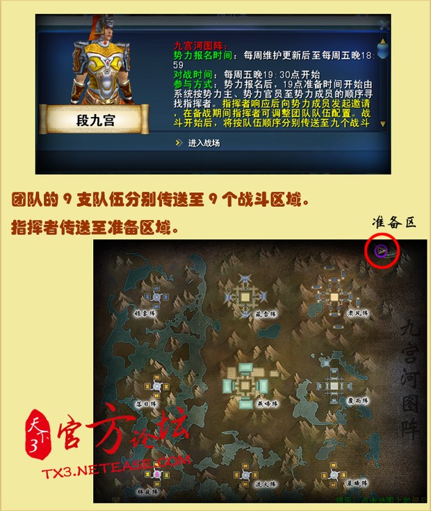 19:30正式开始对战,团队玩家可以通过段九宫进入九宫河图阵中。