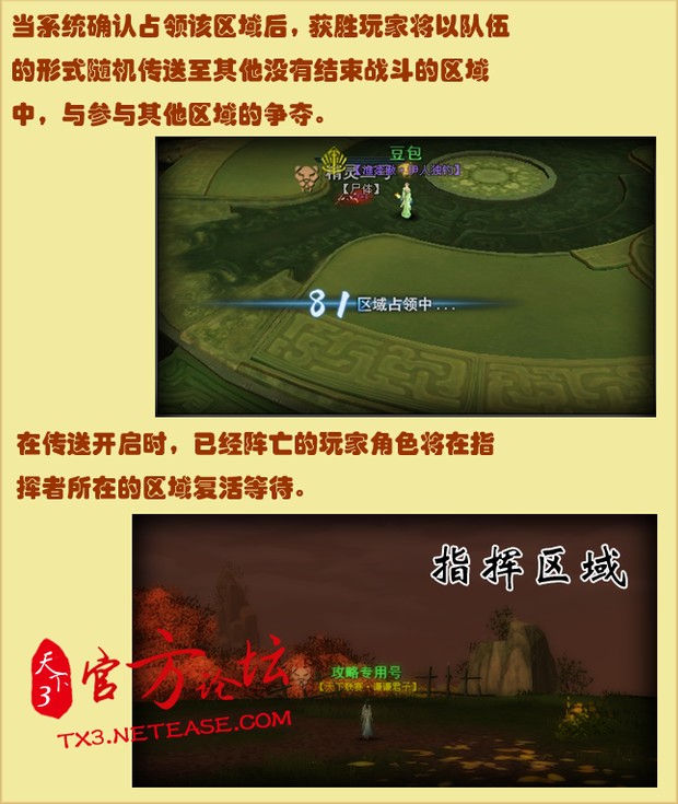当一方队伍将敌方消灭后,要经过一定的时间以待占领该区域。