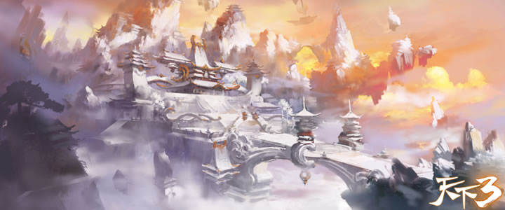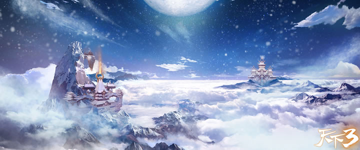 星空之中一轮皓月,西海雪山在云海之间若隐若现,让人感受到高处不胜寒的意境。流云飞雪纷纷扬扬,万籁俱寂之下,令人心驰神往。