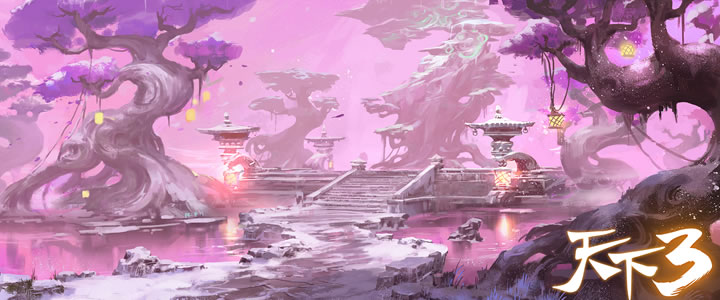 紫红色的神秘气息在这张图中扑面而来,瑰丽的世界令人目眩神迷。一曲小径幽幽的通向远方,诗意的仙界徐徐展现在你的眼前。
